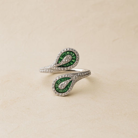 Elegant Toi-Moi Emerald And Diamond Silver Ring