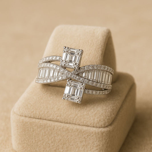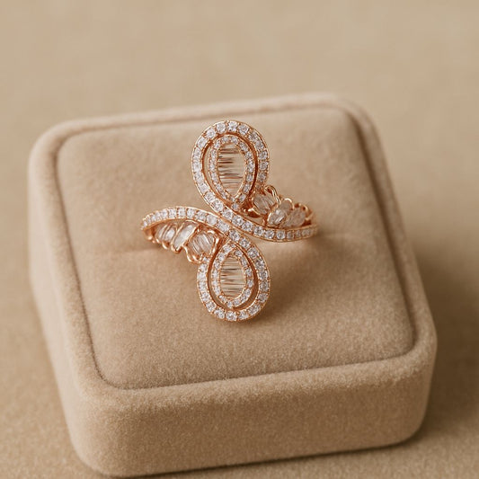 Stylish Sapphire And Diamond Leaf Silver Ring