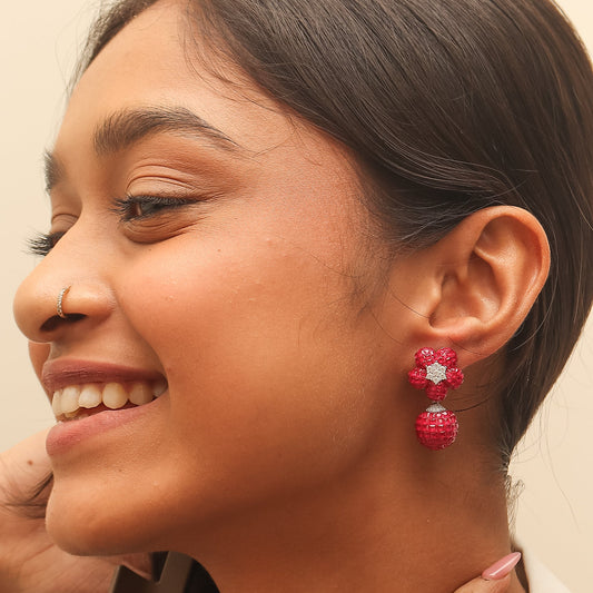 REGAL RUBY AND DIAMONDS SILVER EARRINGS