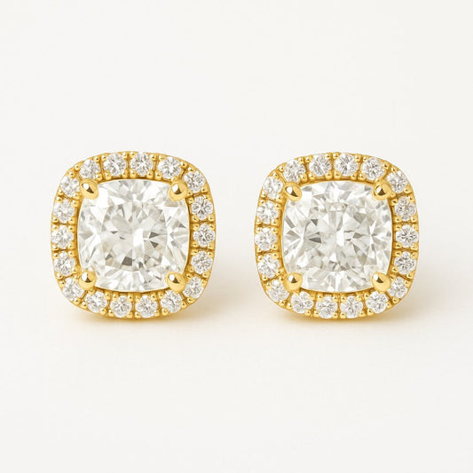 CUSHION DIAMOND STUDS SILVER EARRINGS