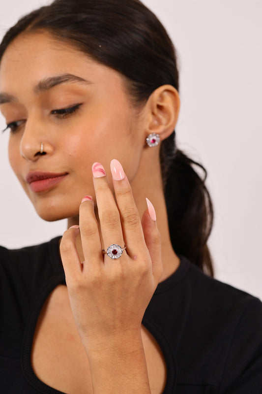 SLEEK RUBY AND DIAMOND STUDS SILVER EARRINGS
