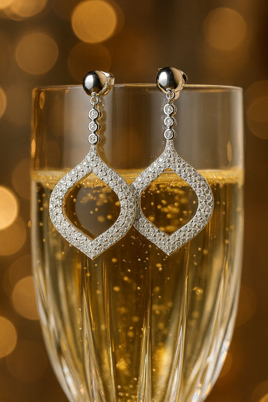 COCKTAIL ROSE GOLD DIAMOND HOOPS SILVER EARRINGS