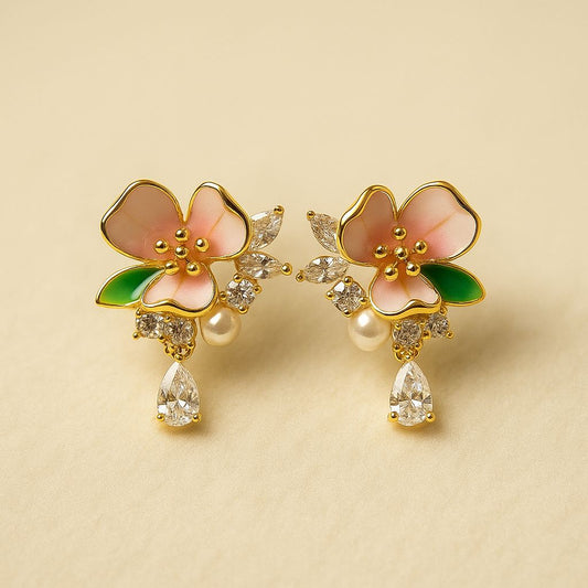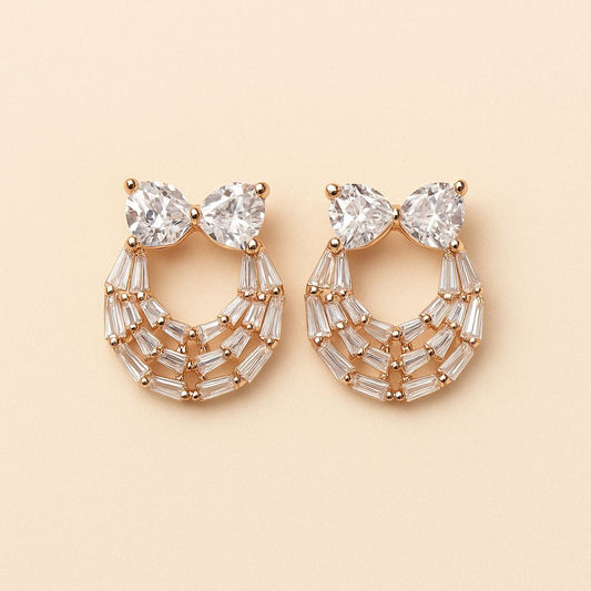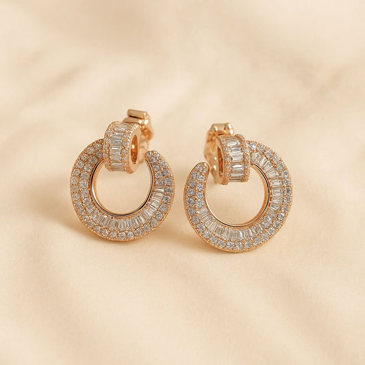 Crystal Shimmer Rosegold Studs Silver Earrings