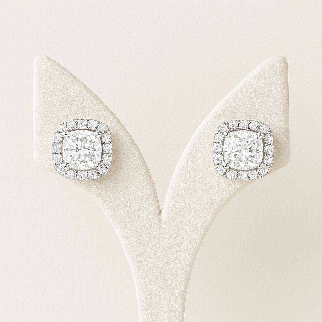 Cushion Diamond Studs Silver Earrings