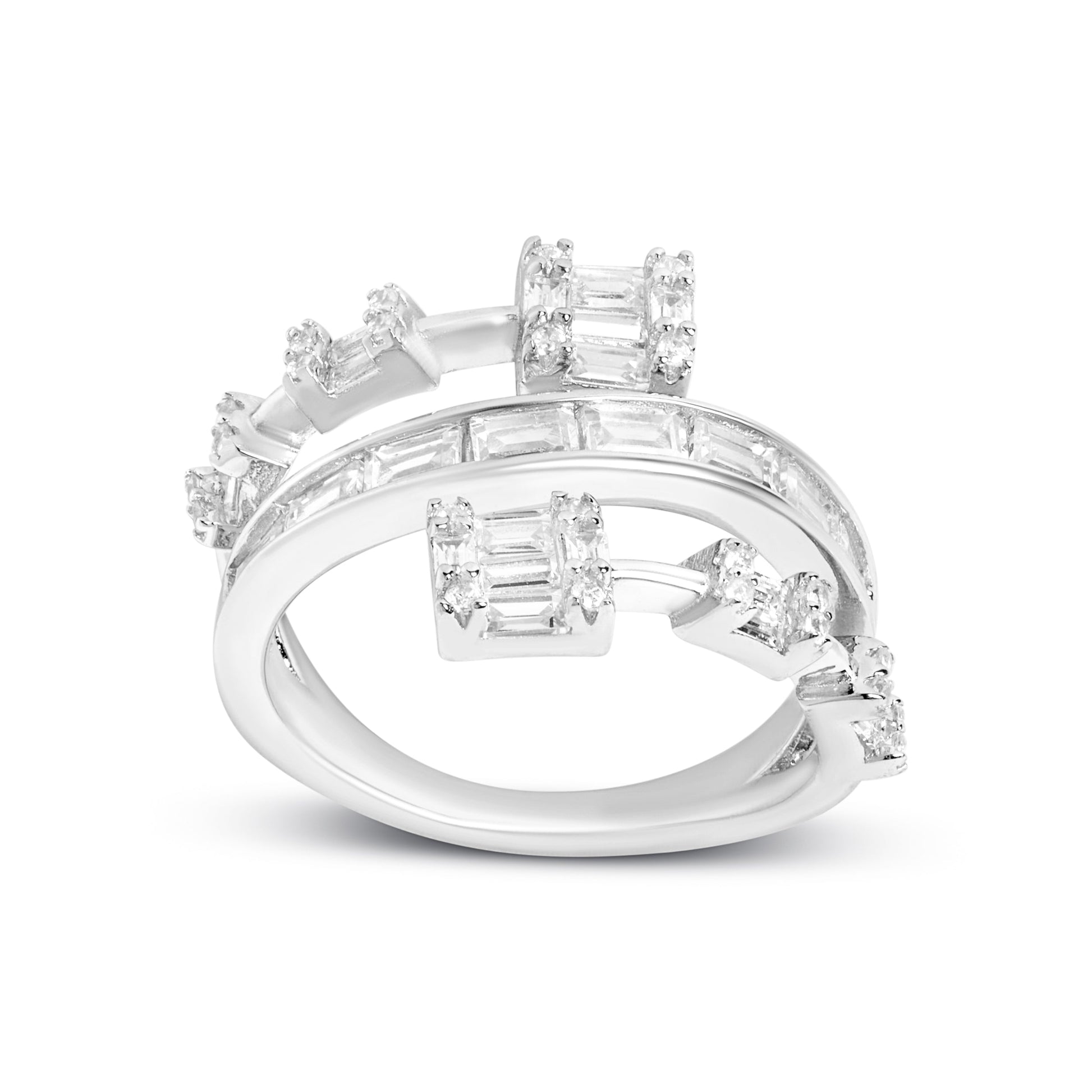 Silver Baguette Diamond Spiral Ring