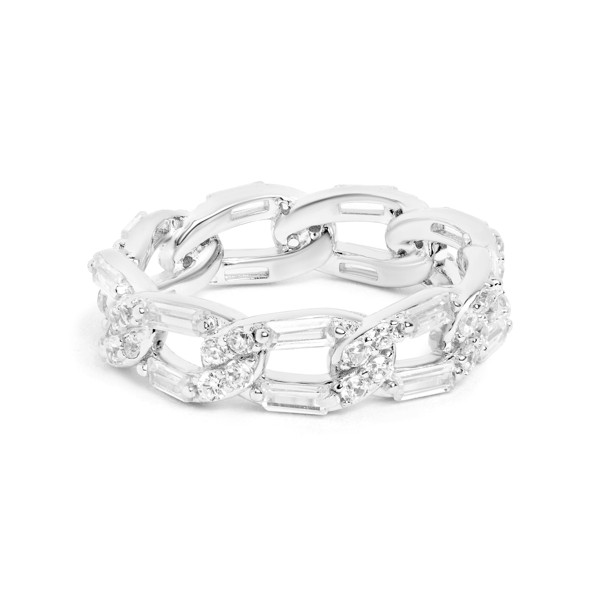 Silver Baguette Link Ring