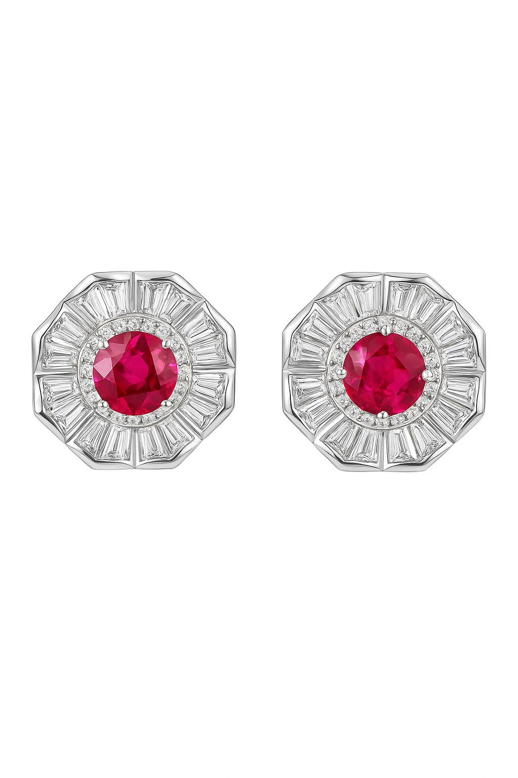 SLEEK RUBY AND DIAMOND STUDS SILVER EARRINGS