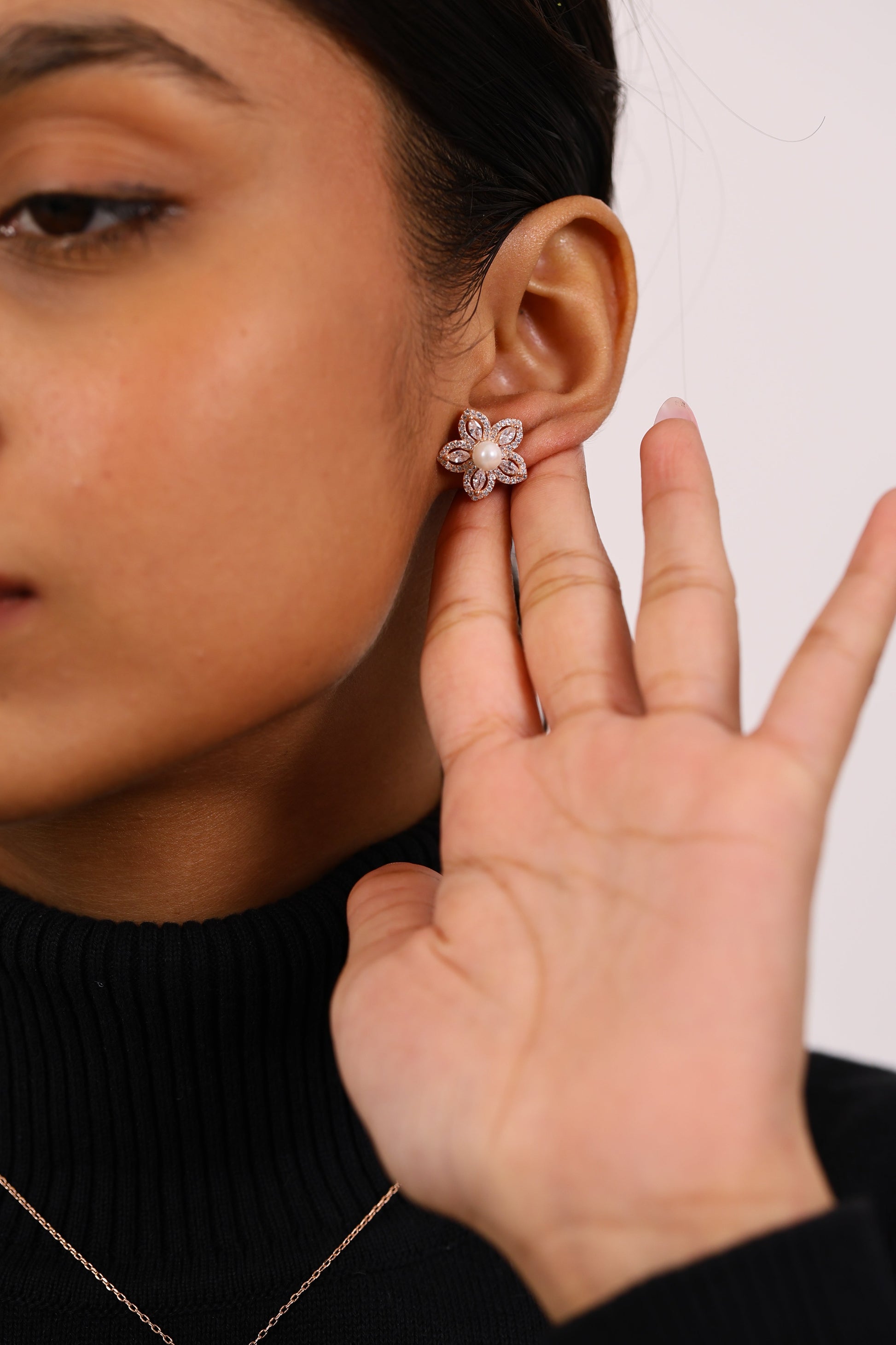 Star Pearl And Diamond Rose Gold Silver Pendant Set